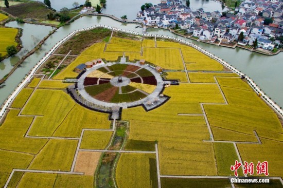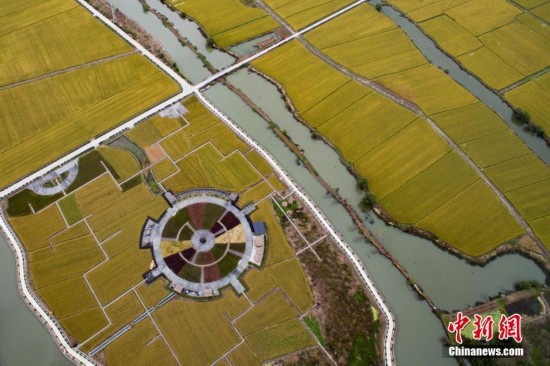 11月9日,空中俯拍南京郊外的成熟稻田和民居。正值江南豐收季,成熟的稻田猶如一幅幅美麗的畫卷。 中新社記者 泱波 攝