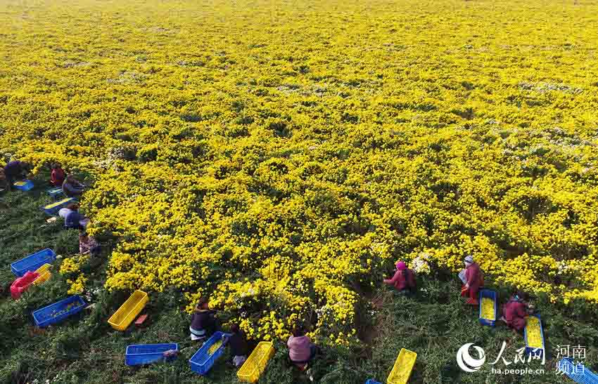 人民網(wǎng)鄭州11月14日電(記者 慎志遠(yuǎn))“不是花中偏愛(ài)菊,此花開(kāi)盡更無(wú)花。”初冬時(shí)節(jié),著名“懷藥”產(chǎn)地河南省溫縣迎來(lái)懷菊花采收旺季,金色大地一派農(nóng)民忙碌收獲的景象。