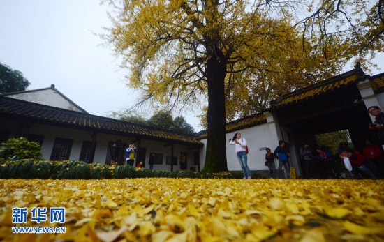 11月20日,游客在江蘇揚州史可法紀(jì)念館內(nèi)賞秋景。