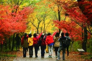 目前正是各種紅葉樹種集中變紅的階段,是最好看的時候。紅楓、楓香、黃連木、櫸樹、鹽膚木、烏桕、山胡椒、爬山虎、美國紅櫟、北美楓香、羽毛楓、赤楓、葡萄楓、香草楓、黃櫨、三角楓以及部分的雞爪槭等眾多紅葉品種集中向游客展示著最艷麗的“楓情”。橙紅、猩紅、粉紅、大紅、紫紅……一次性就能看到多種紅的色度。