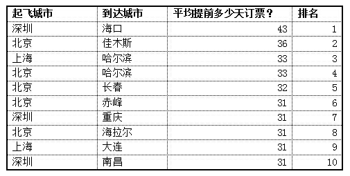 家鄉(xiāng)越北,越會提前購買回家的機票。并不是北方人性子更急,攜程機票專家分析,排名前十名的航線,以大機場往小機場飛為主,每天的航班數(shù)多在30班以內(nèi), 是北京至廣州這種熱門商務(wù)航線航班數(shù)的三分之一。
