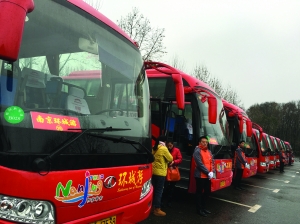 1月6日上午,20輛嶄新的觀光巴士停在中山陵?yáng)|溝停車場(chǎng)。車內(nèi)配置視頻播放系統(tǒng)、藍(lán)牙語(yǔ)音景點(diǎn)講解詞播放系統(tǒng),車載免費(fèi)WiFi等設(shè)施。