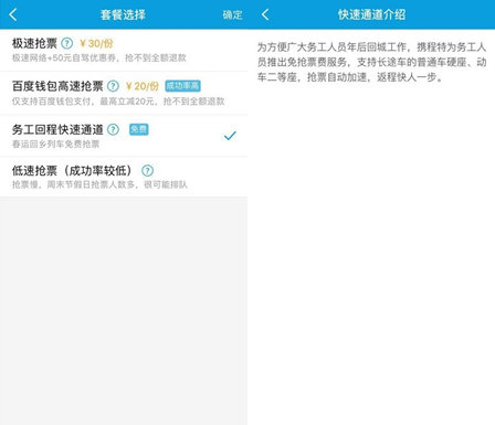 針對(duì)這樣的現(xiàn)狀,攜程于元旦之后推出的名為“務(wù)工回程快速通道”的免搶票費(fèi)搶票服務(wù)通道,為務(wù)工人員購票提供更為多樣化的產(chǎn)品選擇。