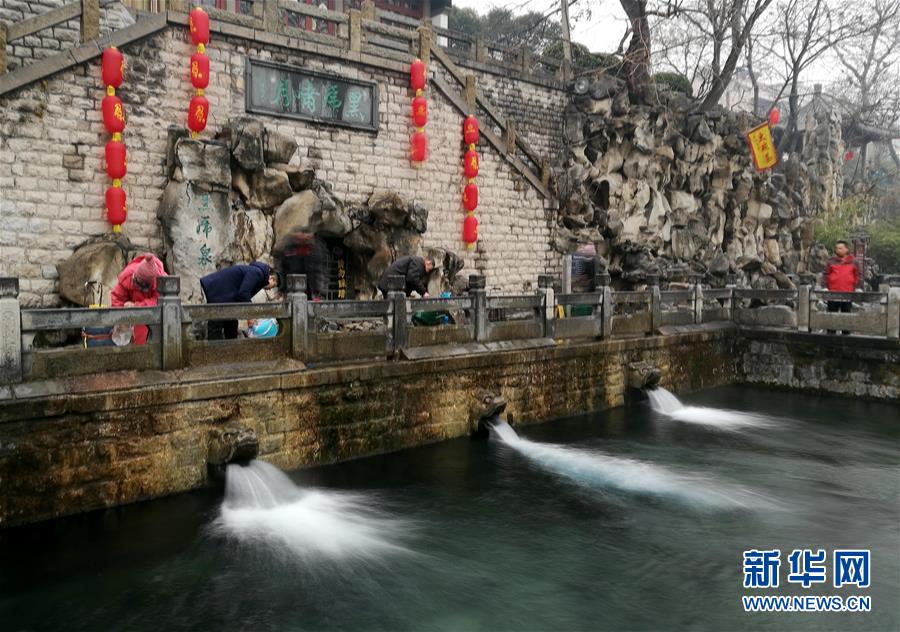這是濟(jì)南黑虎泉(1月29日攝)。 春節(jié)期間,山東濟(jì)南泉水歡暢,噴涌強(qiáng)勁。新華社記者 朱崢 攝