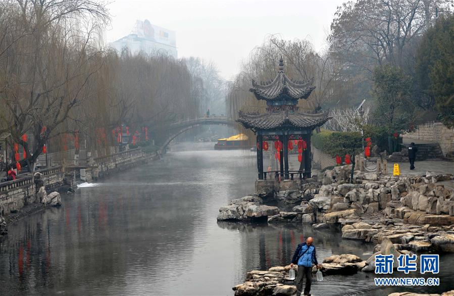 這是泉水匯集而成的濟(jì)南護(hù)城河(1月29日攝)。新華社記者 朱崢 攝