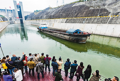 經(jīng)過試運行后,三峽升船機觀光游3月17日正式啟動。游客坐游輪通過三峽升船機,近距離感受升船機的工作過程,欣賞三峽大壩風(fēng)光,領(lǐng)略高峽平湖的壯麗畫卷。