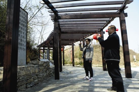 老子山龜山草市位于龜山傳統(tǒng)村落保護(hù)與開(kāi)發(fā)項(xiàng)目的核心區(qū),建設(shè)內(nèi)容包括龜山草市文化休閑廣場(chǎng)、龜山“古村遺韻”詩(shī)詞碑廊、龜山晚鐘亭等。龜山草市于2016年年底建成,其中碑廊詩(shī)詞皆是歷代名人書(shū)寫(xiě)的關(guān)于龜山的詩(shī)詞,共有三十余首。圖為游客正在詩(shī)詞碑廊前拍照。楊衛(wèi)娟 攝