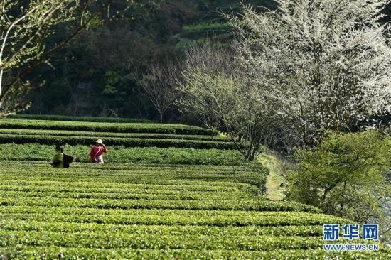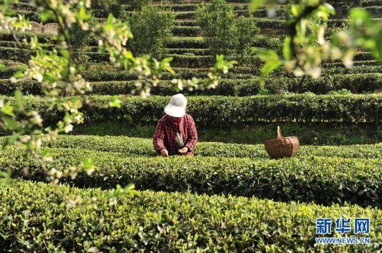 3月26日,湖北恩施二官寨村的茶農在采摘“明前茶”。清明臨近,各地“明前茶”進入采摘高峰期。