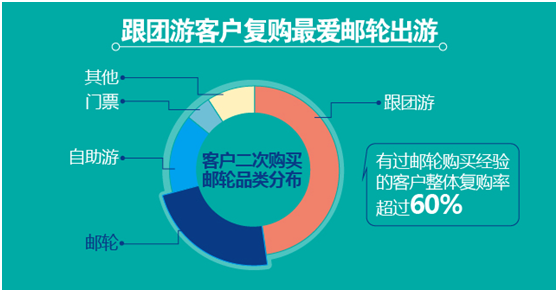 跟團游客戶復購最愛郵輪產(chǎn)品,其次為自助游和門票產(chǎn)品。
