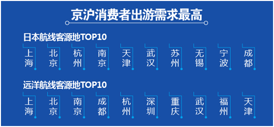 途牛旅游網(wǎng)監(jiān)測數(shù)據(jù)顯示,過去一年,日本航線客源地前十強分別為上海、北京、杭州、南京、天津、武漢、蘇州、無錫、寧波、成都;遠洋航線客源地前十強分別為上海、北京、南京、成都、杭州、深圳、重慶、武漢、福州、天津。從這兩份榜單可以看出,上海、北京兩地消費者不僅是休閑度假游的絕對擁躉,也對郵輪游情有獨鐘。