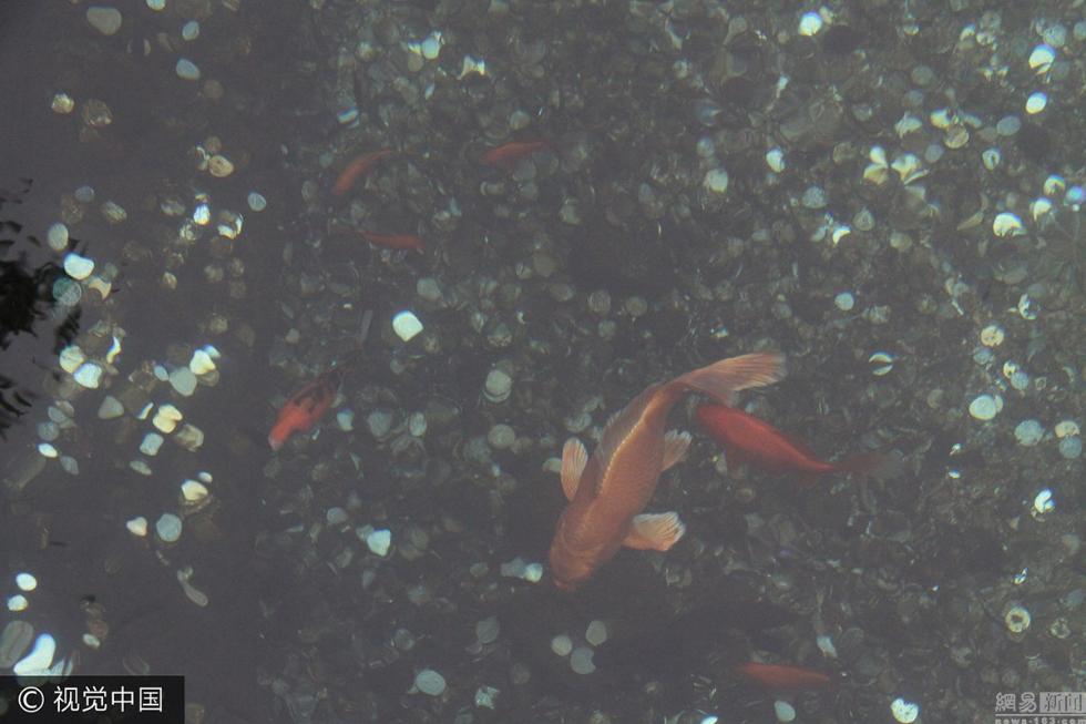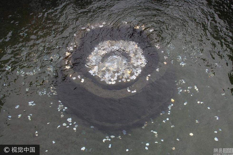 2017年7月5日,在濟(jì)南趵突泉景區(qū),七十二名泉之漱玉泉內(nèi)游客投錢幣堆積在泉池內(nèi),原本游客觀看的泉眼成了“錢眼”。趙亮/視覺中國