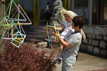 來自江西的游客何思琦被村道樹上掛著的蜜蜂造型吸引,不斷地拍照發(fā)朋友圈,“變廢為寶,有種眼前一亮的感覺”。“小蜜蜂”是由大學(xué)生們用廢棄的奶粉瓶、絲網(wǎng)、毛線制作而成。隊(duì)員劉開旭負(fù)責(zé)為奶粉瓶鉆孔,要先把打孔的地方標(biāo)記出來,再用電鉆小心地穿進(jìn)去,“這是個(gè)細(xì)致活兒,稍有偏差,蜜蜂的翅膀在裝的時(shí)候就會歪掉。“劉開旭說。有著繪畫基礎(chǔ)的隊(duì)員陳純則負(fù)責(zé)給物件繪圖,她特意給10多個(gè)小蜜蜂設(shè)計(jì)了各種可愛、俏皮的表情。“這樣更萌,游客會更喜歡”。