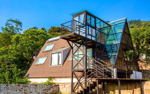 神一樣的玻璃屋閣樓式結(jié)構(gòu)里,