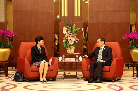 會見后,在李金早和林鄭月娥共同見證下,國家旅游局與香港特區(qū)商務(wù)及經(jīng)濟發(fā)展局在京簽署《關(guān)于進一步深化內(nèi)地與香港旅游合作協(xié)議》。