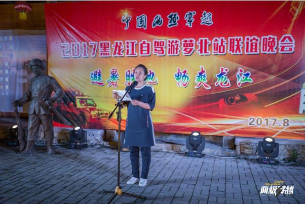 篝火晚會(huì)所需要的食物和木材都已經(jīng)備好,小廣場(chǎng)上聚集了很多人,由鶴崗市人民政府主辦,鶴崗市旅游局、蘿北縣旅游局、蘿北縣文體局聯(lián)合協(xié)辦的特色晚會(huì),給來自四海八方的游客朋友留下了深刻的影響,鶴崗市副市長(zhǎng)李莉發(fā)表致辭,表達(dá)了對(duì)各方游客的熱烈歡迎,并預(yù)祝“中國(guó)兩極穿越·追光之旅”能夠取得圓滿成功。主持人充滿激情,演員充滿熱情,游客更是充滿喜悅之情,在享受視聽盛宴的同時(shí),美味的燒烤也帶給我們味蕾的沖擊。