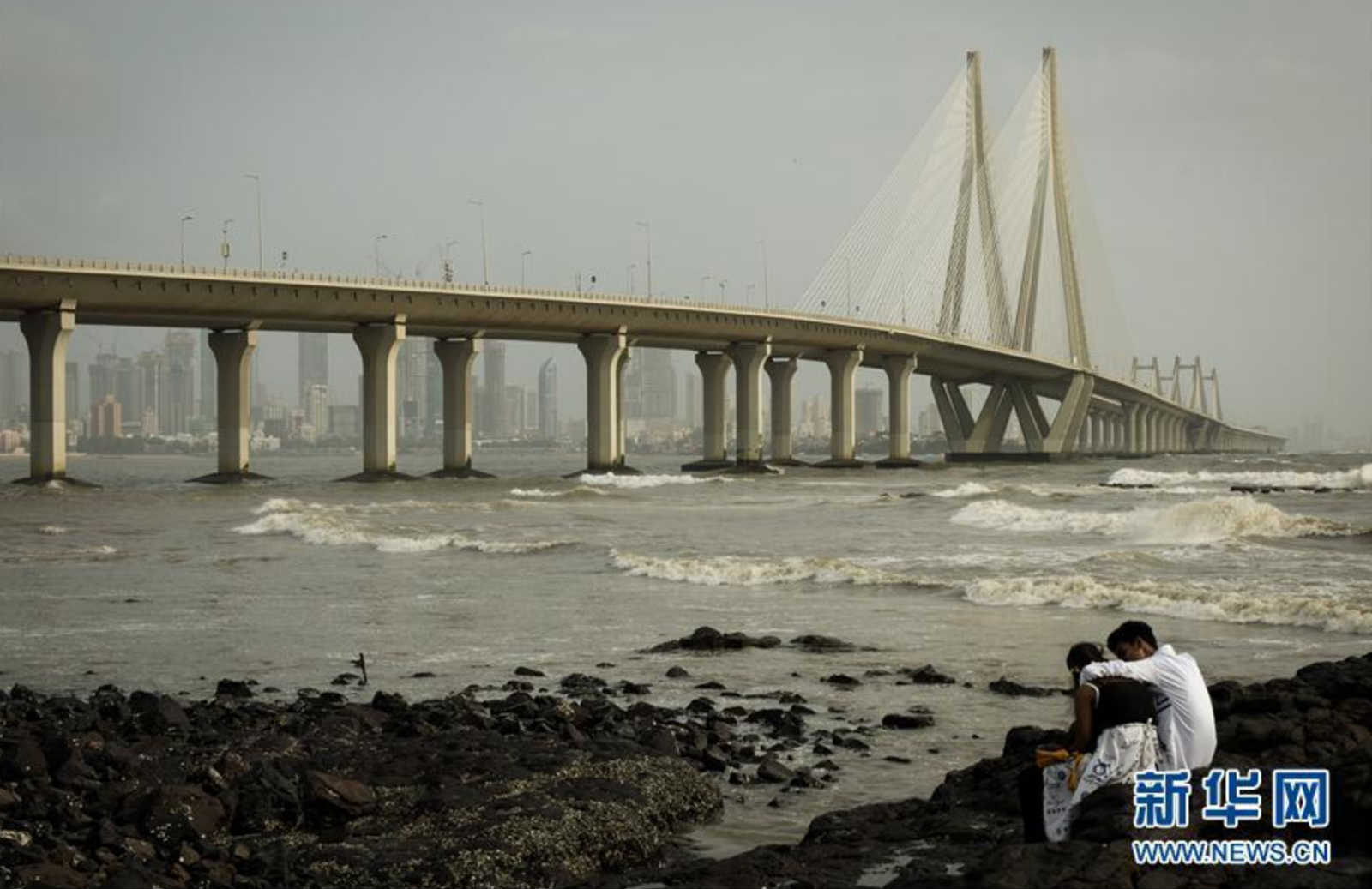 這是2017年7月26日在印度孟買班德拉城堡拍攝的班德拉-沃利跨海大橋。位于孟買中部的班德拉-沃利跨海大橋是孟買乃至整個(gè)印度的又一座地標(biāo)性建筑。這座大橋全長(zhǎng)約5.6公里,連接馬希姆港灣南北兩端,于2009年通車,有效緩解了孟買南北狹長(zhǎng)道路的擁堵局面。新華社記者 畢曉洋 攝
