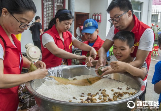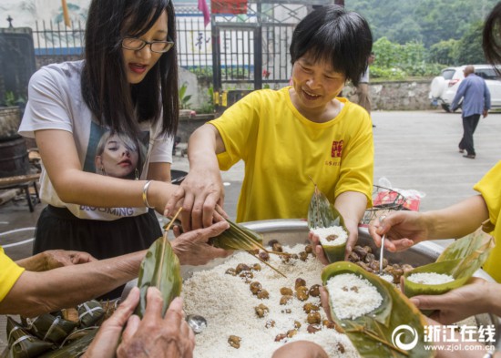 6月10日,“我的禮堂 我的家”端午文化周活動在溫嶺彭家村拉開序幕,村民們齊聚文化禮堂,包粽子、做香囊、觀賞演出,提前度過了一個充滿家鄉(xiāng)味道的端午節(jié)。(浙江在線拍友 朱海偉 攝)