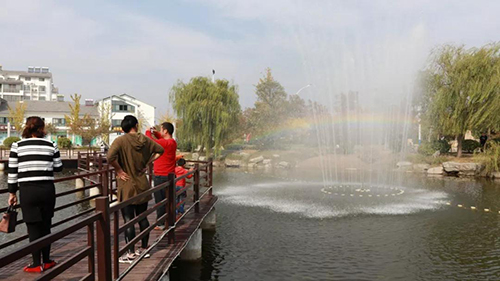 大沙河古鎮(zhèn)音樂(lè)噴泉,陽(yáng)光下的彩虹,很美!