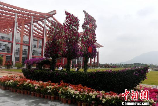 圖為三角梅展區(qū)展出的花卉作品!蚊鳌z