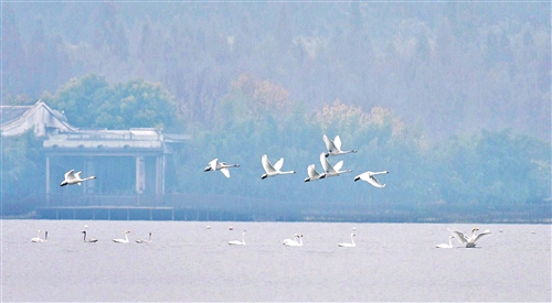 近日,不少市民驚喜地發(fā)現(xiàn),云龍湖玉帶橋北側(cè),陸續(xù)飛來(lái)不少美麗的白天鵝,它們時(shí)而翩翩起舞、時(shí)而低頭覓食、時(shí)而翱翔天空,如同精靈一般,給寧?kù)o的云龍湖增添了不少生趣。 徐州日?qǐng)?bào)全媒體記者 陳艷 通訊員 楊尚福 楊洪武 攝 |