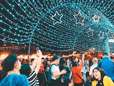 與此同時,其他造型的花燈也很豐富,讓人看得眼花繚亂。在高雄愛河邊,絢爛百米隧道燈、獨創(chuàng)頑味迷宮、律動光影華爾茲、傳情萬花筒等大型創(chuàng)意燈飾,以光影變化增加互動性及趣味性,吸引民眾前去感受萬種風(fēng)情的水岸燈會。在臺中,除主燈“御天飛行豬”外,還有臺中特色的傳統(tǒng)花燈、大型充氣發(fā)光創(chuàng)意主題燈、花博石虎家族主題燈及日本睡魔扇形花燈,別具巧思,充滿創(chuàng)意。