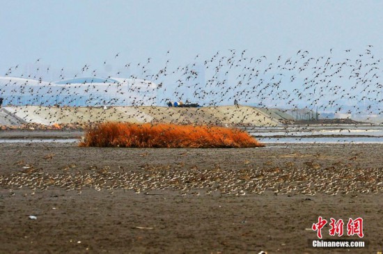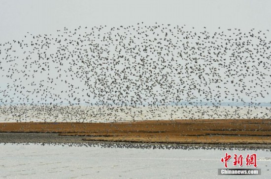 山東青島候鳥(niǎo)遷徙過(guò)境膠州灣 成壯觀過(guò)境潮