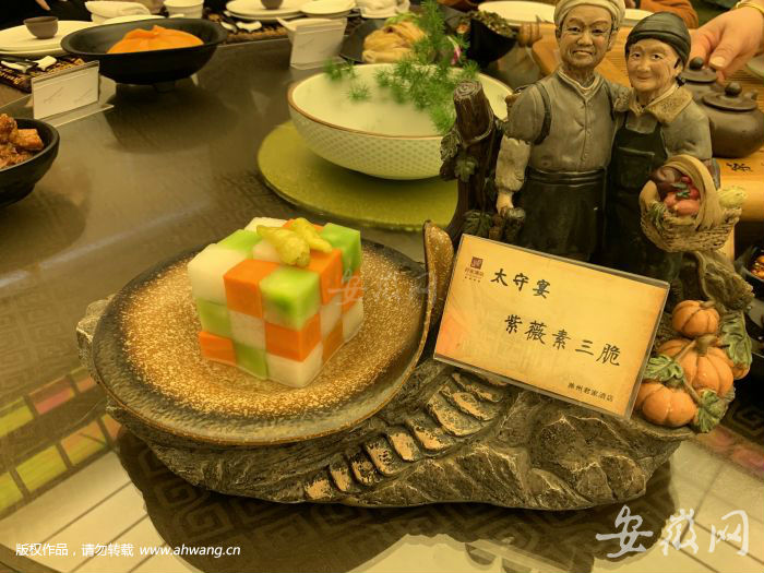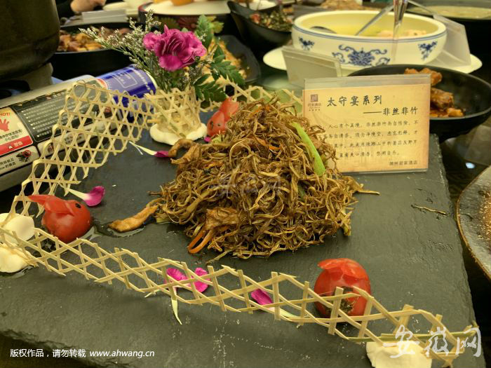 中安在線訊 據(jù)安徽網(wǎng)報(bào)道,在《醉翁亭記》中有一段生動(dòng)地記述:“臨溪而漁,溪深而魚肥,釀泉為酒,泉香而酒洌,山肴野蔌,雜然而前陳者,太守宴也。”根據(jù)文中的典故,選取當(dāng)?shù)氐奶厣穗,這道傳統(tǒng)名宴被復(fù)原再現(xiàn)。