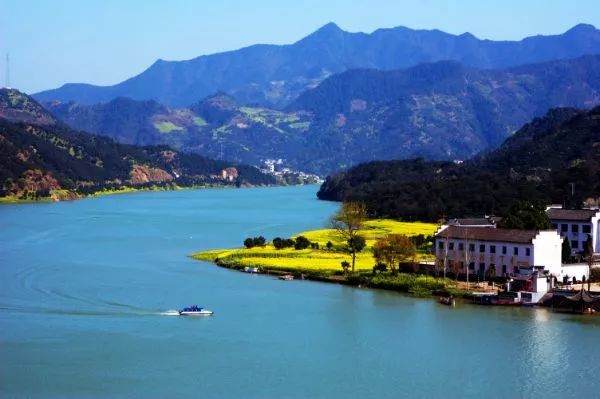 每到春天,兩岸桃花紅、李花白、菜花黃,蜂飛蝶舞,與粉墻黛瓦的徽派民居相互映襯,被譽(yù)為最美山水畫(huà)廊。