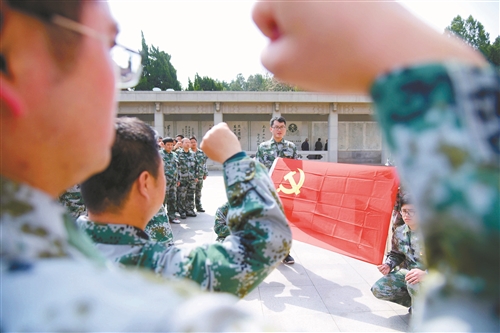 黨員在淮塔前重溫入黨誓詞。 徐州日?qǐng)?bào)全媒體記者 孫井賢 攝