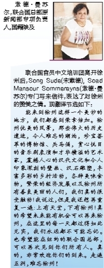 7月21日下午,聯(lián)合國官員中文培訓(xùn)團一行42人在徐州結(jié)束了為期兩天的文化交流活動,帶著豐富的中國文化體驗和美好的城市印象離開徐州,42位培訓(xùn)團成員紛紛表示要將徐州推介給更多的朋友,“為中國徐州代言”。