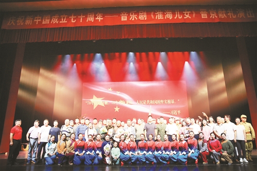 為慶祝新中國成立70周年,以及迎接八一建軍節(jié)的到來,7月27日晚,徐州演藝集團(tuán)歌舞劇院在北京長安大戲院舉行了原創(chuàng)音樂劇《淮海兒女》晉京獻(xiàn)禮演出,在京文藝界專家學(xué)者、徐州市委宣傳部和文旅部門相關(guān)負(fù)責(zé)人等到場觀看。一個半小時的演出情動全場,每一唱段結(jié)束,觀眾皆報以熱烈掌聲,許多人感動得流下眼淚。演出之前,在戲院進(jìn)場大廳舉行的徐州旅游推介及文創(chuàng)展示,讓觀眾在欣賞淮海戰(zhàn)役紅色音樂劇的同期,也增添了對徐州文化旅游的印象。