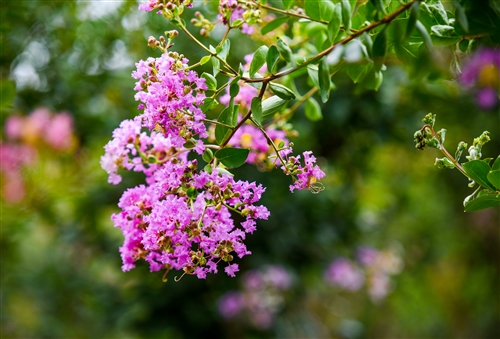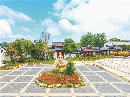 賞花之余,還能觀湖。雨后天晴,沿著青石小路登上觀景臺,整個懸水湖景區(qū)映入眼簾,一覽無余。懸水湖湖面碧藍(lán)、波光粼粼,倪園古村青瓦白墻、石路蜿蜒,紫薇園紫薇盛開、姹紫嫣紅,遠(yuǎn)處藍(lán)天白云、青山環(huán)抱,如畫一般的美景與花海相互輝映,形成一片別具特色的田園風(fēng)光。