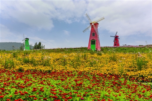 不僅是夏天,這里幾乎四季有花。春季的虞美人、硫華菊、蛇目菊競相開放,置身其間,蝶飛蝶舞,芳香醉人;秋季的波斯菊、翠菊、金雞菊漫山遍野;冬季的宿根天人菊、野菊花傲寒怒放。