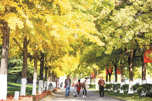 10月28日,金秋時節(jié),在淮塔內(nèi),道路兩側(cè)的銀杏樹、楓樹等景觀樹披上彩妝,色彩斑斕,構(gòu)成了一幅幅醉人的金秋畫卷。 徐州日報全媒體記者 孫井賢 攝 |