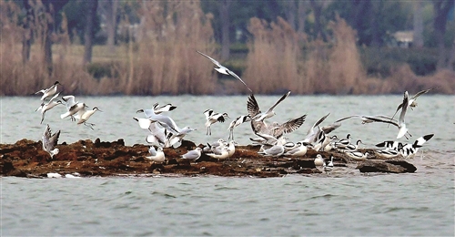 常年在云龍湖拍鳥的攝影愛好者,對這些光臨候鳥客棧的“客人”全都門兒清。“前年春天,北回的反嘴鷸是3月8日來的,去年是3月10日來的,今年來得早了幾天。它們在徐州只是過路,一般最多停留兩三天,只要休整好了,它們就會繼續(xù)北飛。”楊洪武說,“這次,首批北回的反嘴鷸只停留了一天。”