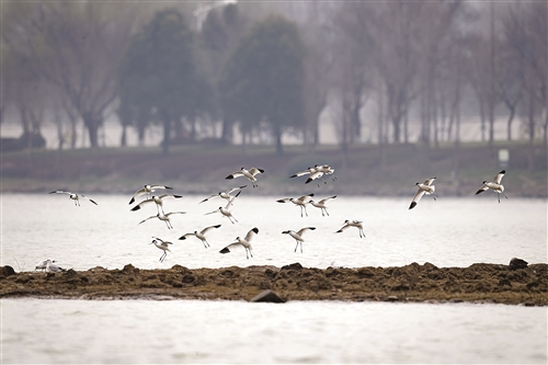 “今天來了一群反嘴鷸!上午先是在玉帶橋那一帶,后來又停在紫薇島西邊的淺灘上休息。”6日晚上,徐州生態(tài)鳥類攝影委員會的微信群里,大家興奮地交流著,這群反嘴鷸是他們今年在云龍湖拍到的首批北回候鳥。
