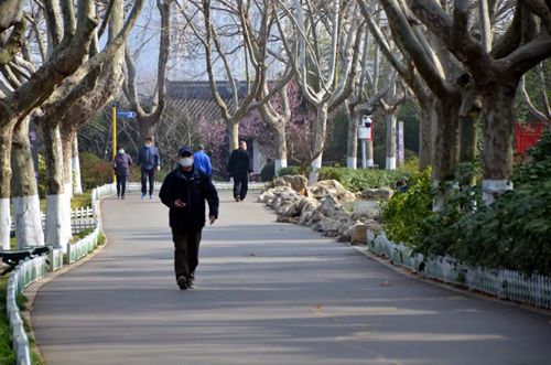戴上口罩并沒有影響游人們對這盎然春意的喜愛