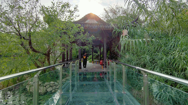 走在透明的玻璃橋上仿佛整個人都懸空了腳下是蕩起漣漪的湖水有一種“水上漫步”的感覺!