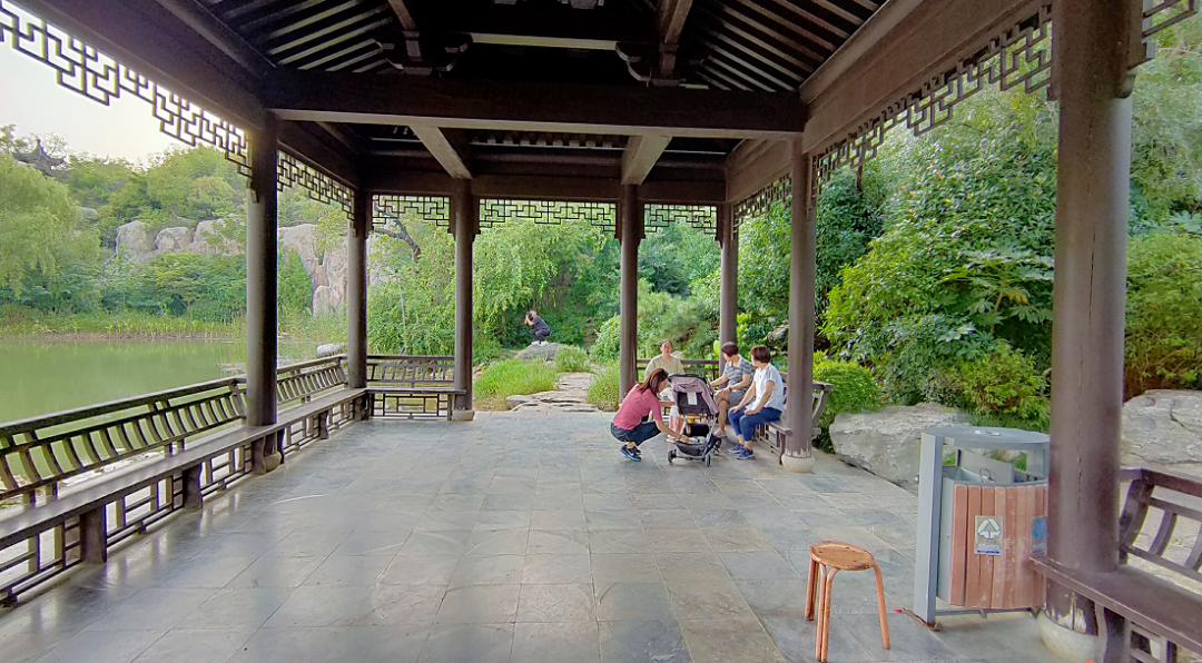 湖邊小亭屹立走進(jìn)去,吹一吹風(fēng)放松一下心情。