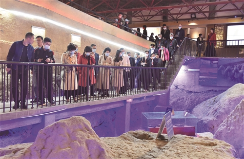 專家學(xué)者在漢文化景區(qū)參觀考察。