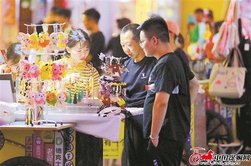 夜市飾品攤點(diǎn)購(gòu)物的市民。