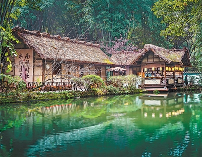 四川省成都市杜甫草堂構建“詩、人、園、館”一體的傳統(tǒng)審美空間,吸引游客參觀。