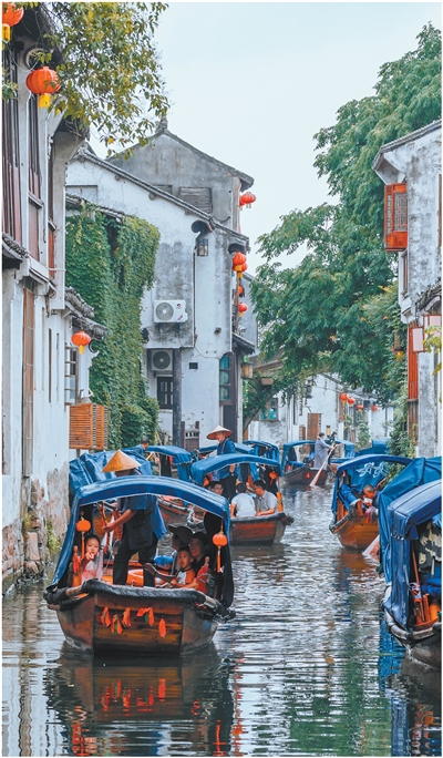 江蘇省昆山市周莊古鎮(zhèn),獨特的水鄉(xiāng)風貌和深厚的人文底蘊吸引著八方游客。