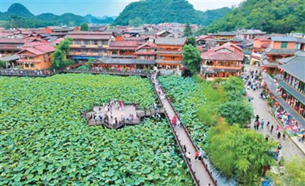 位于云南省文山壯族苗族自治州丘北縣普者黑喀斯特國(guó)家濕地公園核心區(qū)的仙人洞村,196戶村民中就有180多戶經(jīng)營(yíng)民宿餐飲,其中160多戶來(lái)自本鄉(xiāng)本土,只有20來(lái)戶是外來(lái)商戶。沒有過(guò)度商業(yè)化的浮躁,沒有“富了口袋丟了魂”的遺憾,更沒有開發(fā)旅游遷走老村民的困境,這里以“守住生態(tài)底色、抓牢文化靈魂、抱團(tuán)共富不跑偏”的實(shí)踐,破解了“鄉(xiāng)村游如何留住鄉(xiāng)土味”的難題。