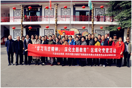 黃淮網(wǎng)   2019年10月26日,徐州下淀社區(qū)黨委聯(lián)合轄區(qū)黨建共建單位—中國大地財產(chǎn)保險股份有限公司徐州中心支公司黨支部,共計40余名黨員干部到江蘇省先進基層黨組織、習(xí)主席曾經(jīng)視察過的徐州市賈汪區(qū)馬莊村開展“學(xué)習(xí)馬莊精神 深化主題教育”區(qū)域化黨建活動。實地領(lǐng)悟習(xí)近平總書記視察徐州重要指示精神,提升黨建水平,助力社區(qū)經(jīng)濟振興;取馬莊黨員 “不忘初心、牢記使命”主題教育活動真經(jīng),對照自身不足找差距。