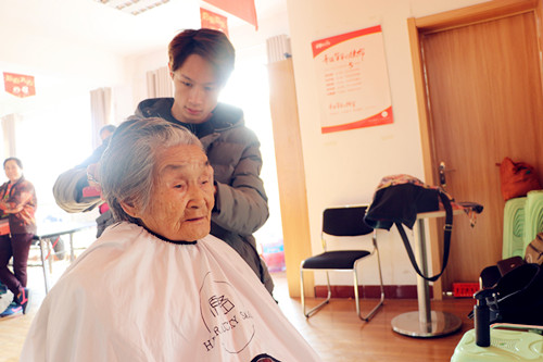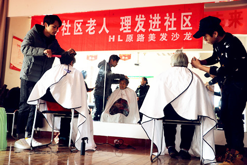 該理發(fā)店的阿光和小坤兩位廣西籍的年輕人均為90后,他們利用特長,經(jīng)常到敬老院、福利院、社區(qū)做善事。此次來幸福九號服務(wù),以他們精湛的手藝,贏得老人們的一致贊揚(yáng)。