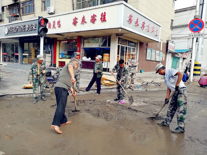 黨員志愿者頂著烈日,不怕臟累,挖溝、清淤、壘井、鋪水泥,干了整整一天,最終還原了下淀南路干凈通暢的本來面目。