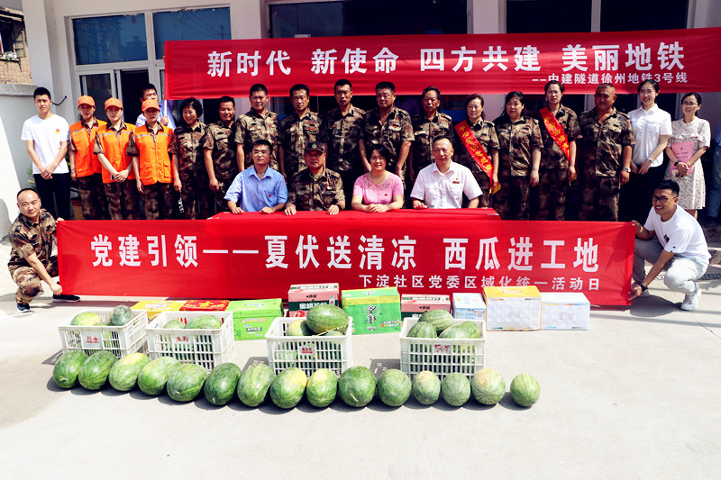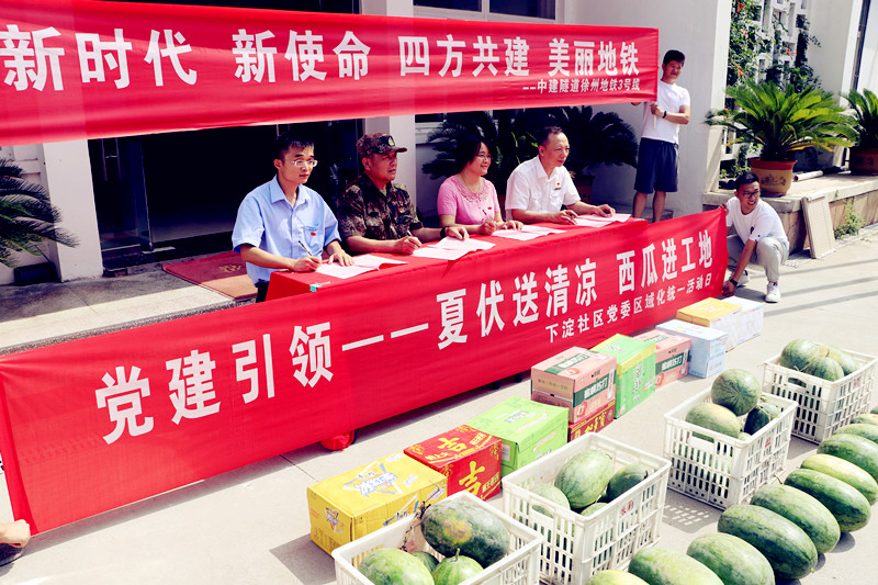 為助推活動順利發(fā)展,下淀社區(qū)黨委、市軌道公司第三黨支部、徐州地鐵運營公司黨總支、鐵路徐州北站機(jī)關(guān)黨總支分別為辛苦在地鐵三號線建設(shè)的職工們送去了西瓜和飲料,并參觀了地鐵建設(shè)現(xiàn)場。