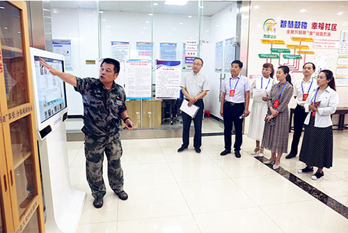 付書記帶領(lǐng)大家參觀了服務(wù)大廳、防災(zāi)減災(zāi)設(shè)施、社區(qū)記憶館、群眾文化娛樂場(chǎng)地、付化友黨建工作室等。