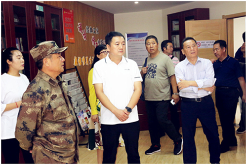 付書記帶領(lǐng)大家參觀了服務(wù)大廳、防災減災設(shè)施、社區(qū)記憶館、群眾文化娛樂場地、付化友黨建工作室,并高興地在黨建工作室合影留念。